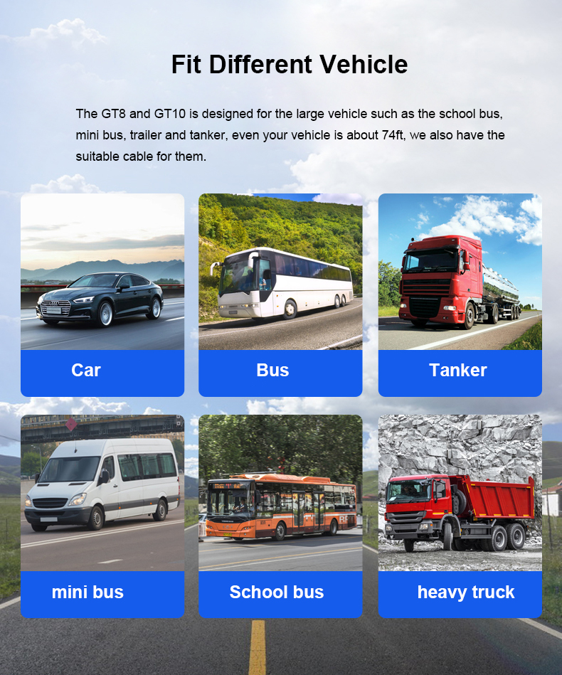 Fit vehicles: car, school bus, tanker, trailer, truck etc